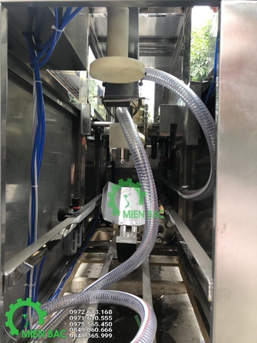 Công đoạn tráng rửa được trang bị 1 bơm áp đầu inox 304 được sản xuất theo công nghệ của Italy. Máy bơm này có tác dụng bơm nước tinh khiết lẫn ozone tiệt khuẩn vào trong vỏ bình 20 lít để làm sạch bên trong bình trước khi đưa bình tới bộ phận chiết rót