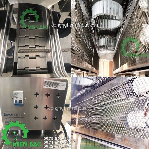 – Vật liệu máy: Vỏ máy, băng tải inox