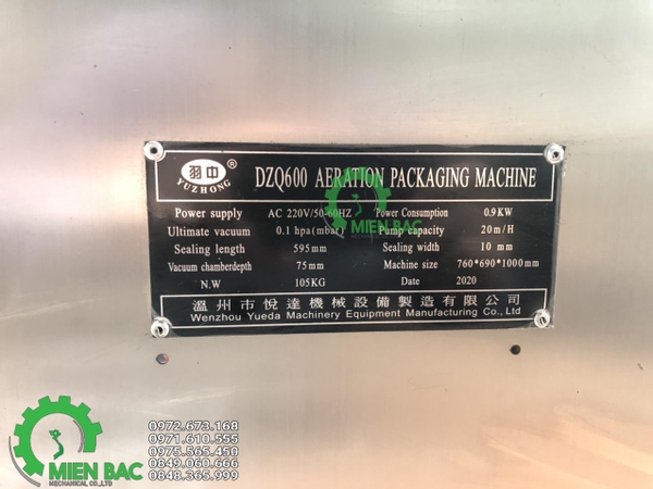 Thông số kỹ thuật máy hút chân không DZQ 600 công nghiệp: