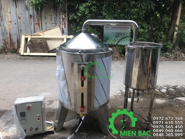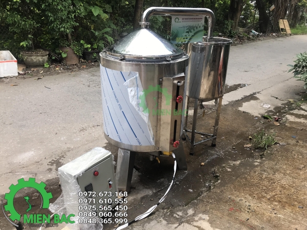 Nồi nấu chưng cất rượu inox 100 lít do công ty máy Miền Bắc chế tạo sử dụng công nghệ nấu bằng điện dùng để thay thế các sản phẩm nồi nấu chưng cất rượu truyền thống dùng than củi , có năng suất cao, giảm chi phí vận hành, không có hiện tượng cháy, sục tràn, đảm bảo vệ sinh an toàn thực phẩm (VSATTP).